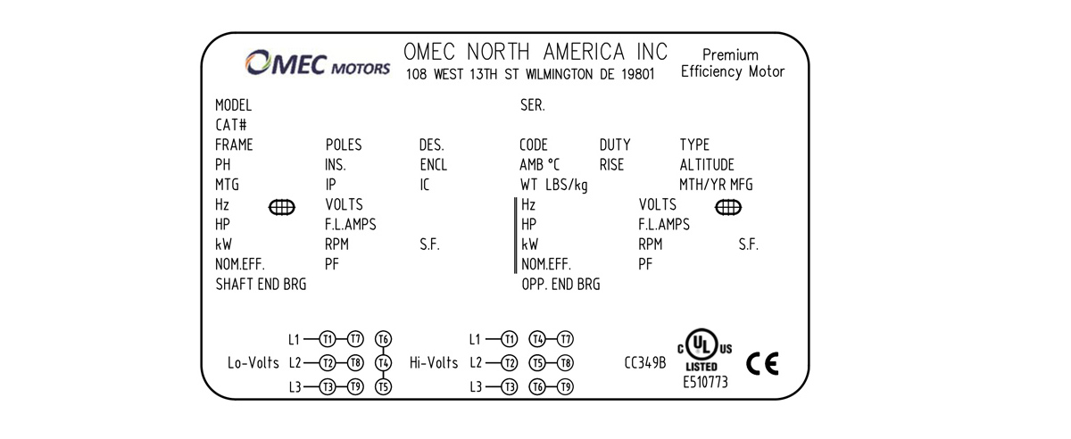 | NEMA TEFC 低壓電機 OMN 145T-4 1.5kW 208-230/460V T |